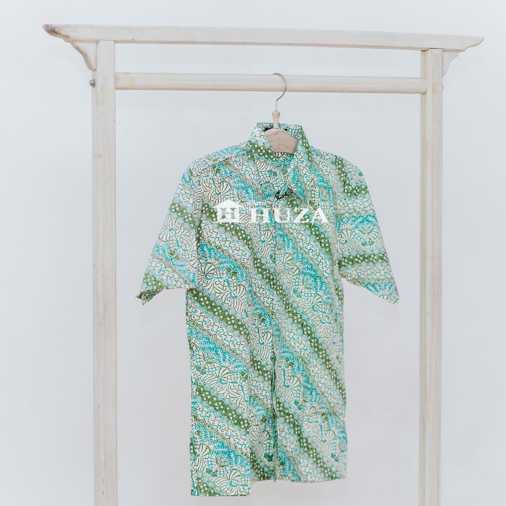 Name: Kemeja Pria Atasan Batik Pria Lengan Pendek Bahan Katun Cap Regular Fit Batik Huza