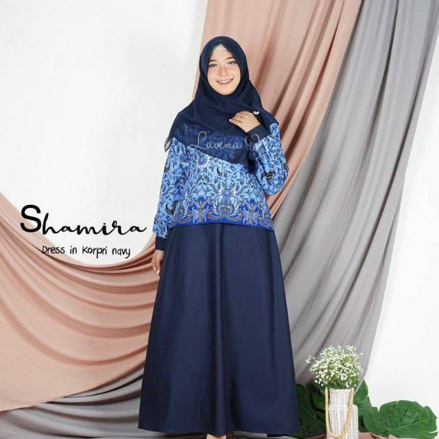 Name: Luvena - Shamira Korpri Dress Original/ Gamis Batik / Seragam Batik Pns / Batik Biru