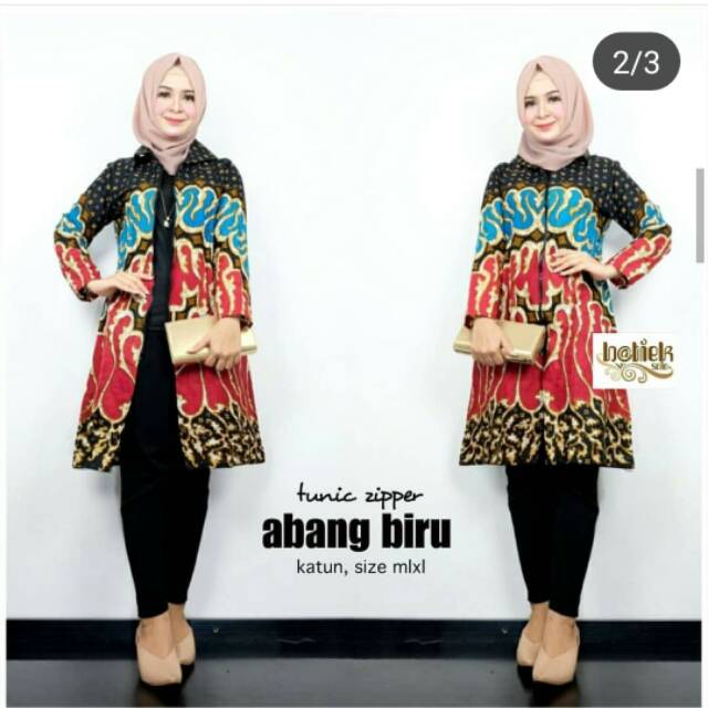 Name: Tunik Zipper Abang Biru Batik Parang Warna Lereng Cantik Putri Solo