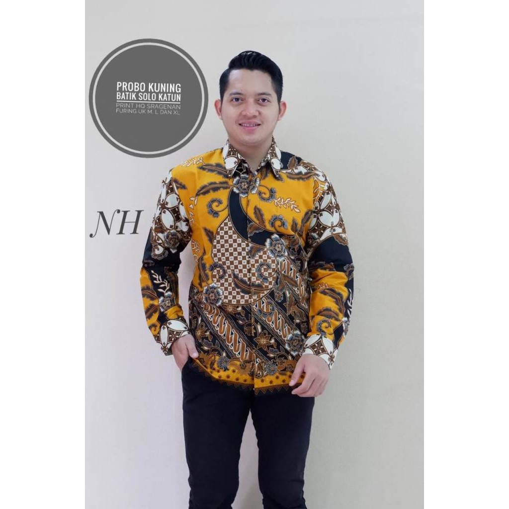 Name: Probo Kuning Ori Nh Asli Batik Solo Kemeja Batik Pria Bahan Katun Sragenan Full Furing